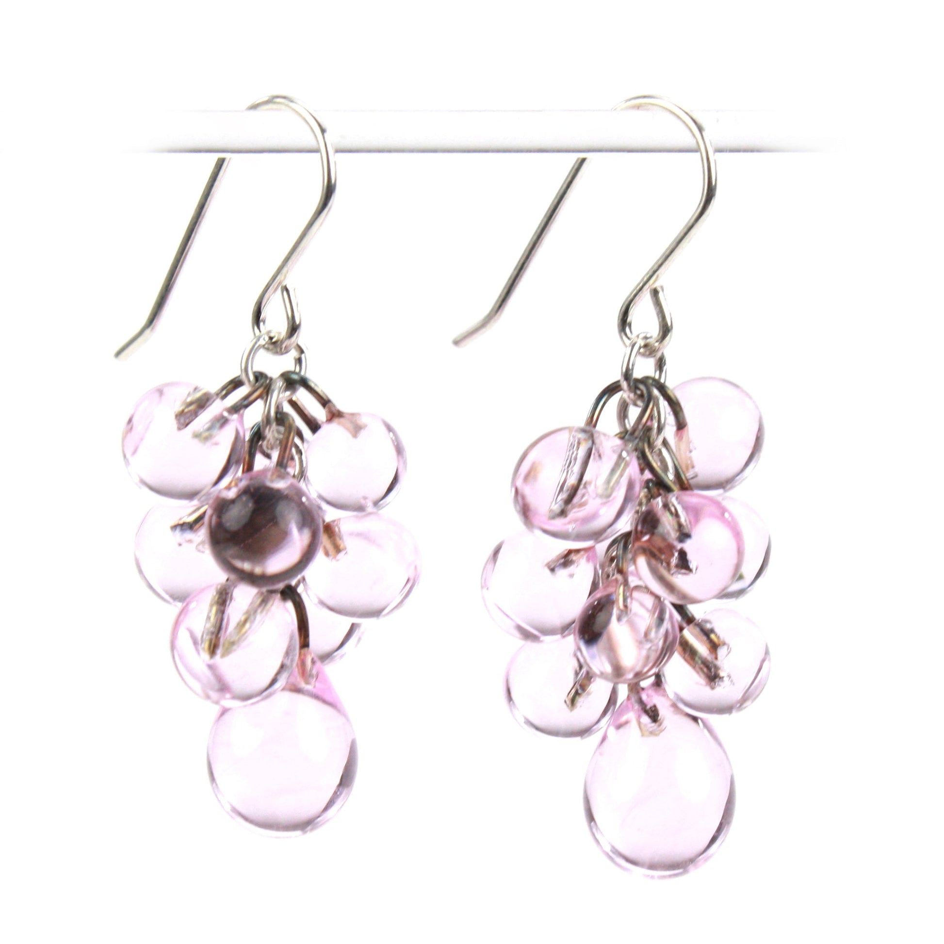 Hung from sterling silver hooks, the clusters of small, round glass beads create a visually stunning effect. Add a pop of color to your jewelry collection with these handcrafted glass dangly earrings and make a statement wherever you go! Whether you're looking to treat yourself or give a thoughtful gift to a loved one, these earrings are the perfect choice.